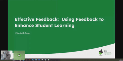 Join Oak's Curriculum Manager, Elisabeth Pugh, as she discusses how to use effective feedback to enhance pupils' learning. This webinar covers: How to deliver pupils feedback to enhance learning Examples of effective and ineffective feedback How to use Oak's quizzes to support the feedback process Who it's for: Primary and secondary classroom teachers Heads of department Further resources If you found this workshop helpful, here are some additional resources to help support your in-class teaching: Take a look at our curriculum maps. For each subject and key stage there is a map that provides: an overview of the curriculum principles we’ve followed; details about all units of work in each subject and key stage; one or more optional sequences you can teach them in.